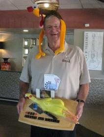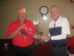 Henry Huntsberry, the 2013 Snowbird Award Winner presents the 2014 Snowbird Award to Jim Kopka. Henry was sad to give up the Trophy, but Jim said he will take good care of it.