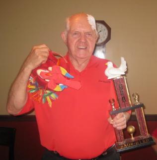 Henry Huntsberry, the 2013 Snowbird Award Winner presents the 2014 Snowbird Award to Jim Kopka. Henry was sad to give up the Trophy, but Jim said he will take good care of it.