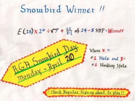 John Rowan took the Sandbag away from Ray Boudreau today, January 16, with a net 59. This was during the first day of play for the 2015 BGA Ryder Cup Classic.